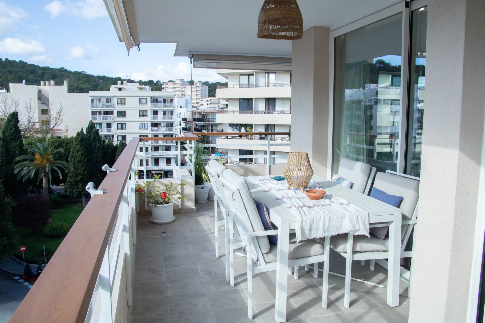Un punto a destacar es la combinación de estilo de vida urbano, tranquilidad y vistas: desde una terraza se puede disfrutar de vistas al histórico Castillo de Bellver, mientras que el dormitorio principal ofrece una vista impresionante de la famosa catedral de Palma.